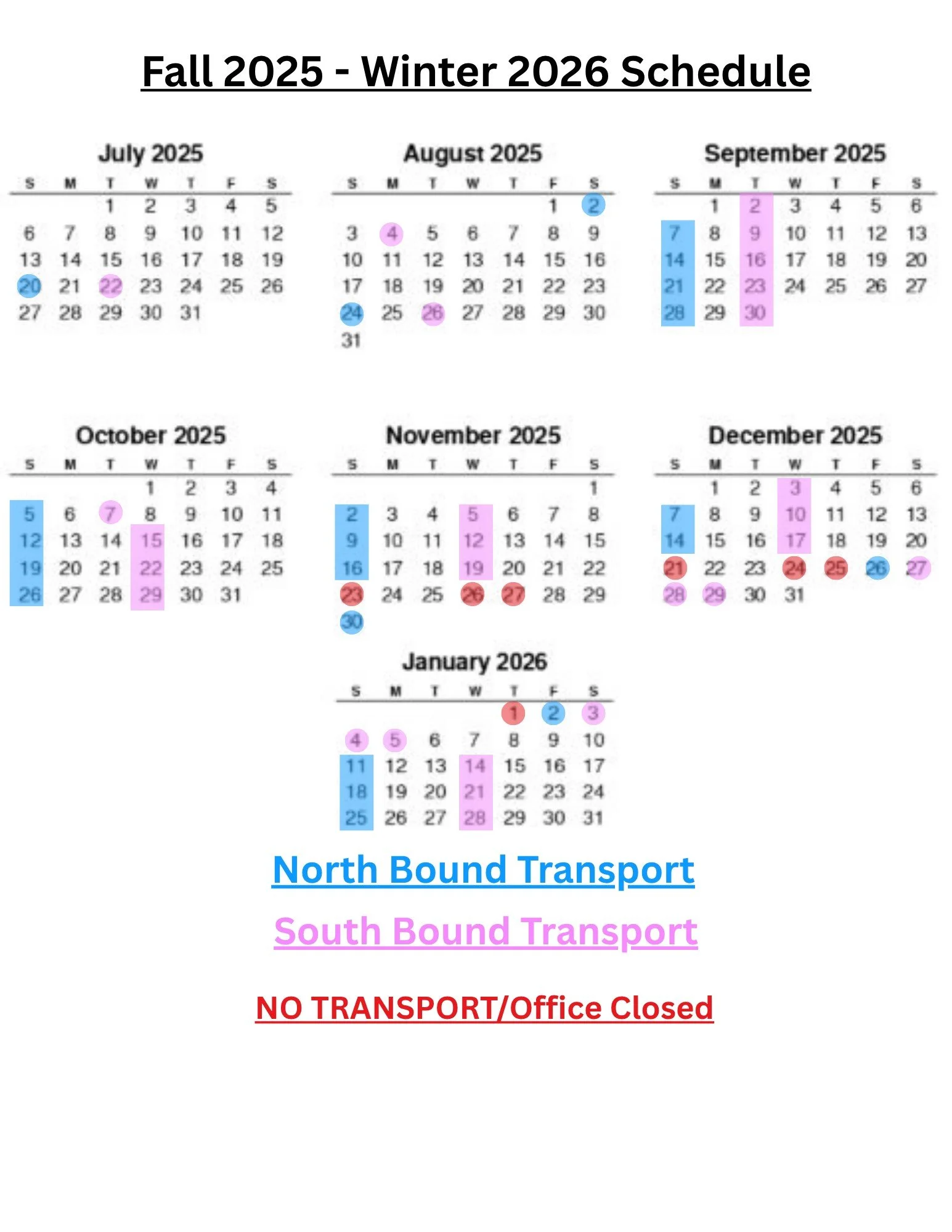 FALL 2025 - WINTER 2026 SCHEDULE